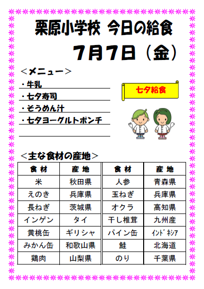 足立区立栗原小学校の給食室から給食産地公表をしています。